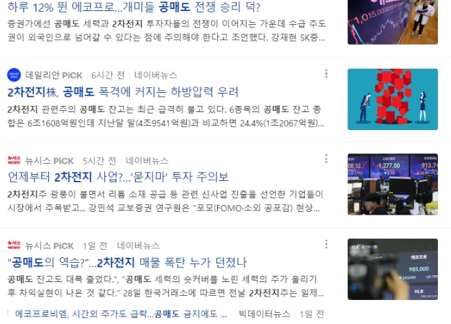 2차 전지 테마의 경우 '대규모 공매도 잔고'로 인해 주가의 향방을 예측하기 어렵습니다. 아무리 유망한 종목이라도 공매도 영향으로 수급이 크게 역전될 수 있기 때문에 주의해야 합니다.