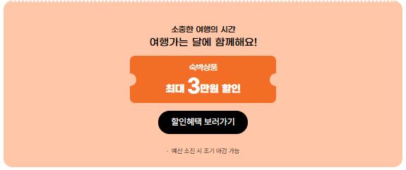 방학을 맞은 자녀나 사랑하는 사람과 함께 여행을 계획 중이라면 5만원 이상 숙박 시 3만원 할인 쿠폰을 선착순으로 증정하고 있으니 3만원 절약하고 행복한 여행이 될 수 있을 거예요.
